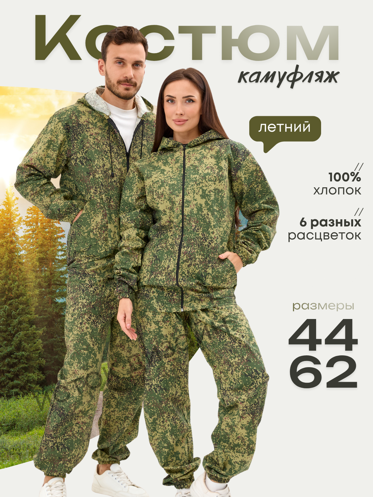 Камуфляжный костюм для мужчин и женщин - это идеальный выбор для любителей активного отдыха на природе. Брючный тактический костюм рабочий выполнен из прочного и легкого материала - хлопкового полотна, ткань пропускает влагу (пары пота), гигроскопична. Рекомендуется стирать в режиме «Деликатная стирка» при температуре не выше 30 градусов. Хлопковый комплект – горка состоит из куртки и брюк. Удобная куртка на молнии снабжена капюшоном. Ткань хлопок не вызовет дискомфорта. Штаны с поясом на резинке не спадут и не будут доставлять дискомфорт во время наклонов и приседаний, а резинки на рукавах и снизу на брюках не позволят насекомым залететь под одежду. В глубокие удобные карманы на штанах и куртке можно положить необходимые предметы.